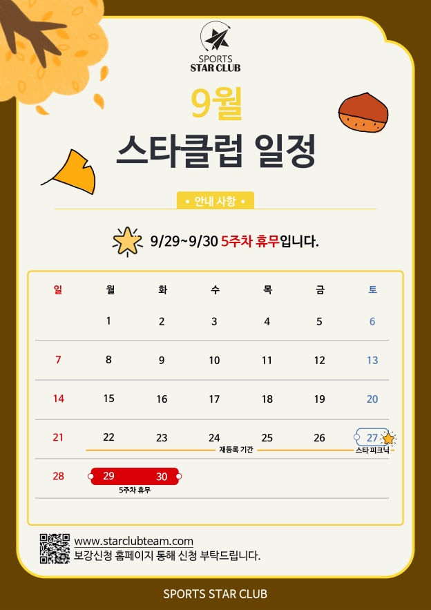 스타클럽 9월 일정